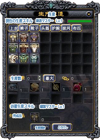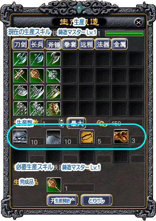 | 生産ウィンドウ | 武器生産NPC | |