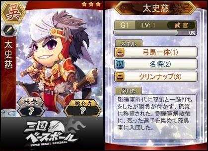 『三国ベースボール』でサービス開始時点で最もレア度が高い★3のカードの中から、ティザーサイトでイラストを公開している有名武将「周泰」「曹操」「劉備」「孫堅」「夏候惇」「太史慈」のカード画像を公開いたします。