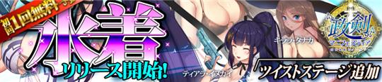 「政剣マニフェスティア」8月17日に政霊「キララ・タナカ」「ティアラ・イヌカイ」の水着コスチューム適用可能化を含むアップデートを実施