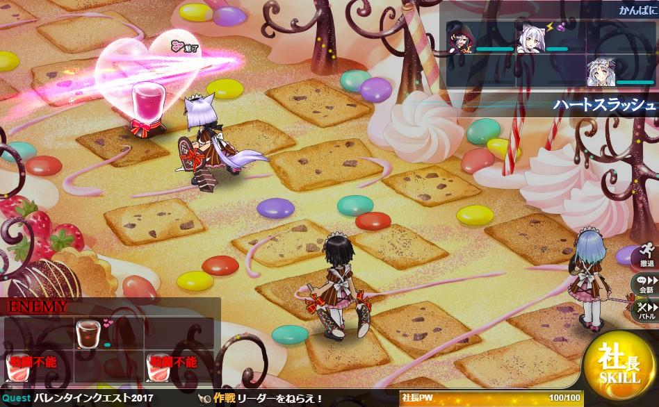 メインクエスト、イベントクエスト、キャラクターストーリーのいずれかをクリアすると、出撃した部隊の社員から「感謝のチョコ」を受け取ることができる。
