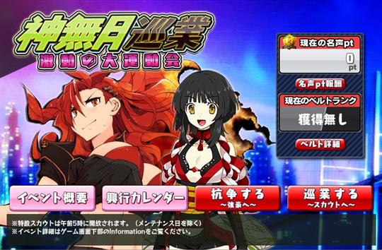 「神無月巡業~激動の大運動会~」は、特設スカウトに出現する強豪を撃破し、獲得する「名声pt」で豪華報酬の獲得やベルトのランクアップを目指すイベントです。繰り返し現れる強豪を倒し、報酬を手に入れて、ベルトをランクアップさせましょう!