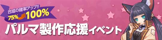 「コスチューム合成」システムで、エピックコスチュームを合成素材に使用してパルマコスチュームを合成すると、通常75%の成功確率が期間限定でなんと100%の成功確率にアップする。