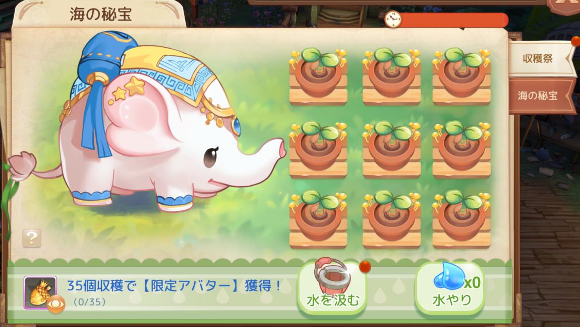 収穫祭では「水やりクエスト」を達成することでイベント限定アイテム「わき水」を獲得することができる。わき水を苗に使用すると苗が成長し、果物を収穫することができる。収穫すると、冒険に役立つアイテムを獲得することができる。